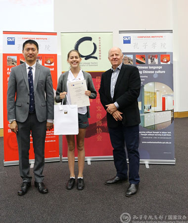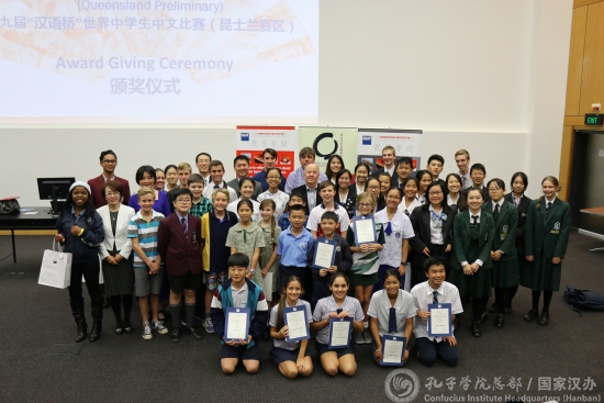当地时间5月28日,澳大利亚昆士兰州第九届“汉语桥”世界中学生中文选拔赛和2016年昆士兰州中小学生汉语演讲总决赛在昆士兰科技大学(QUT)举行。本届“汉语桥”比赛由中国驻布里斯班总领馆主办,昆士兰科技大学孔子学院承办。中国驻布里斯班总领馆副总领事高文棋、教育领事刘万亮、QUT副校长谢博德等嘉宾应邀出席。