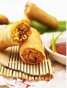 春卷是老老少少、男男女女老外们最爱的中国点心。通过春卷不难看出,粤式小吃在外国人心中还是很有影响力的。人大的英国美眉凯琪就特爱吃春卷,每个礼拜都要去商店买来很多,放在宿舍里,天天边吃边学习、上网聊天、听音乐什么的。
