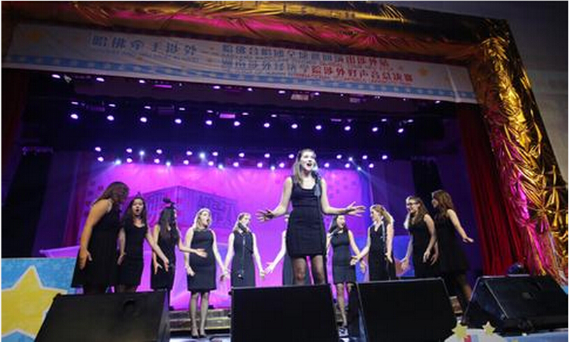 A capella – the style of singing without musical instruments – made its way to Hunan International Economics University (HIEU) recently when Harvard University’s oldest a capella singing troupe performed at the University. The Harvard Radcliffe Pitches was founded in 1975 at the historic Hasty Pudding Club and consists of up of 12 to 14 undergraduate students from Harvard University who are united in their passion for singing. This special performance was among the many events organized by HIEU in an effort to boost relations between Chinese and US students.