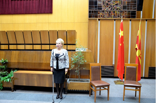 The cultural promotion activities kicked off on November 5th, the day when the 20th anniversary of Sino-Macedonia Friendship Association was celebrated. In the opening ceremony, Suzanne Spasovska, a respectable Macedonian female singer and member of UKiM-SWUFE CI, has sang the Macedonian and the Chinese national song in their own language, greatly impressing the audience. At the meeting afterwards, SMFA President Koroba highly acclaimed CI’s efforts in producing Chinese language specialists and hoped for more work will be done by CI to promote culture exchange between Macedonia and China.