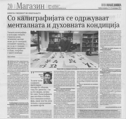 Three days later, journalists from новамакедонијa, the most prestigious newspaper in Macedonia, interviewed Dean Deng Shizhong about Chinese character culture and watched Deng’s calligraphic work in person.