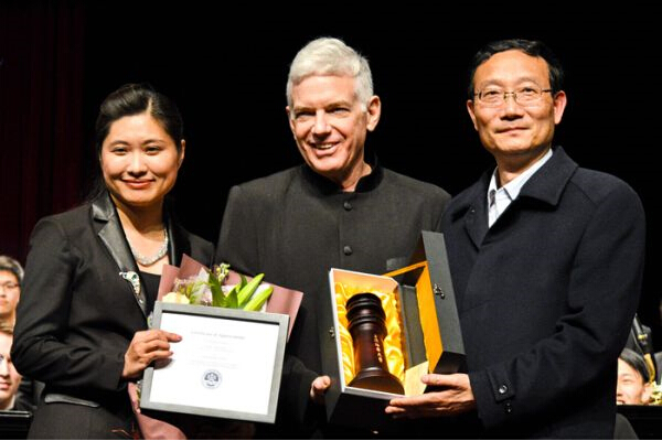 On the night of March 23, the music exchanges between band from University of Washington and the SMU Orchestra was held at the auditorium. As conductors of the concert, Mr Timothy Salzman from University of Washington and Mrs Ma Hua from SMU gave performances and about 120 students from both parties took part in this performance. The concert attracted over one thousand audience, including Prof. Huang Youfang, President of SMU.