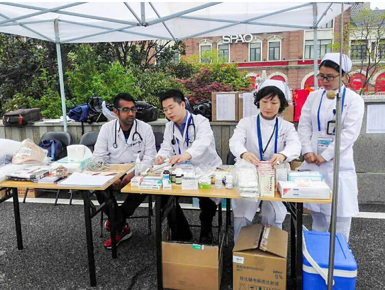 During Wuhan Marathon 2016, he followed Professor Cheng Cai, Cardiovascular Surgeon at Tongji Hospital, providing appropriate medical assistance at booth 10 situated at the 20km mark.