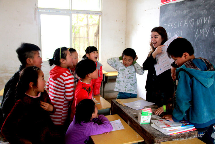 Outang Primary Schoollies at the foot of Dabie Mountain, where about 120 children reside. YULIA, a Russian girl prepared some vocabulary cards and cute stickers for the students so as to make her class more interesting. Since those who answered the questions correctly would be given a sticker, the children answered actively which added a great amount of liveliness to the class atmosphere.