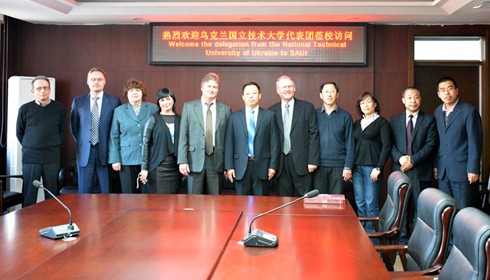 On December 16, 2013, National Technical University of Ukraine delegation visited SAU and was warmly received by Prof. Wang Qi, Vice President of SAU. Prof. Wang Qi extended warm welcome to the delegation and discussed joint research project and Confucius Institute with National Technical University of Ukraine. Both parties expressed that joint efforts will be made to enhance the exchange and cooperation between two universities.