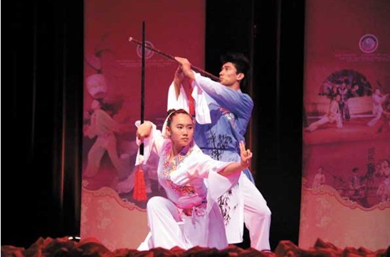 Students from Lang's school give a performance that shows the elegant side of kung fu, with the message of wushu's spiritual values telling people to stop fighting. "I practiced wushu because my parents thought it was healthy and made me strong," recalls Lang. "But the more I learned, the more I became obsessed with it. I feel so proud that I come from the same place as Huo." Receiving many awards in China and across Asia, Lang became a member of the China National Wushu Sports Team in 1988, competing abroad representing his country. After retirement at age 31, Lang, together with his wife, Hou Dongmei, also a wushu expert from Tianjin, founded the school. In its first year, only 56 students applied. Thanks to Lang's reputation, the number of students soon rose dramatically and the training courses expanded to include nine styles, including sanda, or free boxing and Chinese wrestling. Lang and his wife lived at the school with the students for the first 10 years. Besides teaching and practicing, they also spent their spare time with students, introducing wushu history and the story of Huo Yuanjia to them. "I watched lots of kung fu movies and I came to the school at 10," says Yang Mengyuan, 19. Now a professional wushu athlete, he practices eight hours a day and has won awards at home and abroad. "In most action films, good guys fight bad guys. The action looks great. But my teacher told me what I was seeing was just violence against violence, which is about revenge, not wushu," says Yang. "I am starting to know the true meaning of wushu after 10 years of learning it, like my teacher says - stop fighting." An accomplished solo wushu performer, Yang enjoys every moment onstage, especially performing abroad. He says audiences see wushu as a symbol of China, which makes him very proud. "I want to open my own wushu studio after retirement. Like my teachers, I want to pass the knowledge and spirit of wushu to more young Chinese people in the future," he says. For 14-year-old Li Yixuan, wushu not only represents power and justice, but beauty. Li, from Sichuan province, started training at the school at 7. As a minority group in the school, her wushu skills have the grace and fluidity of dance. "I fell in love with wushu when I was little. A sister from our neighborhood was a big wushu fan and she practiced every morning. Her moves were so smooth and beautiful," recalls Li. Lang says the achievements and popularity the school has achieved are within his expectations, although things were tough in the beginning. "Wushu is in our blood, which is natural and never dies," he says. "If the movie Fearless is about a man's journey, then my school witnesses the journey of 2,000 students and even more in the future.