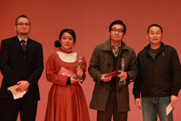 Cui Shaojun, director of the Best Play -- The Glass Menagerie, gives credit for tonight's success to all the hard work on and behind the stage. From selecting the play to adapting the script, from preparing the costumes and props to rehearsals, it took 70 days to present tonight's 20 minutes. Being a director, he said the most difficult part was to get his actors into the play or to "hypnotize" them into their characters. However, their efforts were paid off tonight.