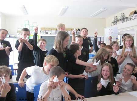 Fairfield Primary School, which is located in the north-eastern part of England, had their first “China Day” for two days on two successive Mondays of 6th and 13th June, 2011. As part of the cultural activities oriented for Year 6 children before they enter a secondary school, all of the 42 kids spent two special and colorful China days with Hanban Teacher Miss Yuan by taking part in a series of Chinese cultural activities.