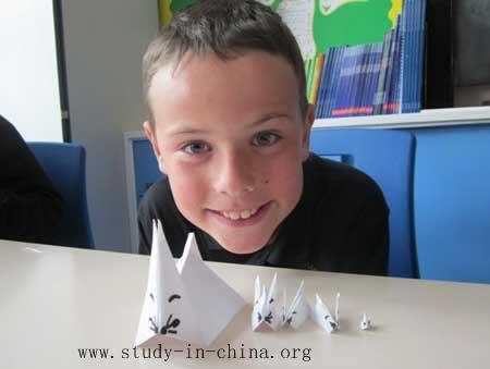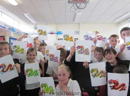 The third part of the activities was about Chinese Zodiac, the story of twelve animals. As 2011 is the year of rabbit and some of the Year 6 were born in the year of rabbits, Miss Yuan taught the children how to fold a rabbit out of a piece of paper, which turned out to be particularly popular with them. When they got a vivid paper rabbit in their hand, they were so impressed by Chinese traditional paper folding craft. Afterwards, as most of the children were born in the year of dragon, Miss Yuan explained the important place and symbolic meaning of dragon in Chinese culture, which was followed by designing and making a picture of Chinese dragon.
