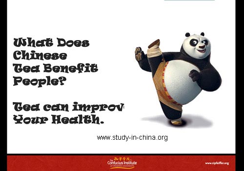 Pic2: Kungfu panda asked one question ”what does Chinese tea benefit people?”