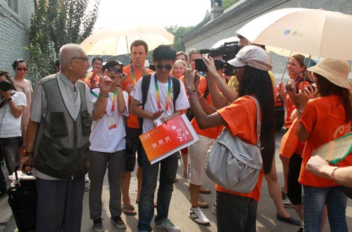 After a few months of the global pre-selection, all the players of the 10th "Chinese Bridge" Chinese Proficiency Competition for Foreign College Students finally gathered in Beijing. July 10 is the first collective activity for "Chinese Bridge" players. Accompanied by the cool morning breeze, players from around the world with different nationalities and different skin colors began their journey to experience Chinese culture. The first stop was the Great Wall-JUYONGGUAN. These kids who are keen on the Chinese culture were shocked by the benchmarking building of Chinese civilization on their arrival. All the players gathered in the Great Wall, shouted out toward the world the slogan of Chinese Bridge : "Friendship bridge, soul symphony", which came from the bottom of my heart cries constantly echoed in the valley.