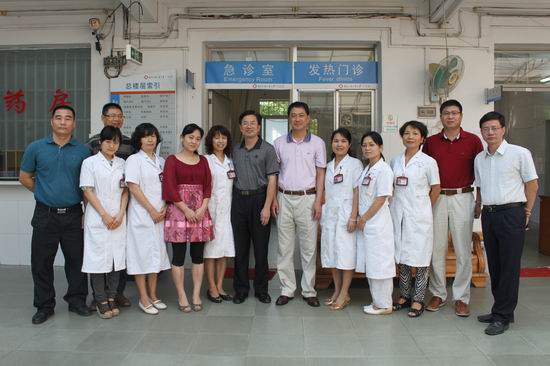 A photograph of Sui Guangjun, He Chuantian and the clinic staff