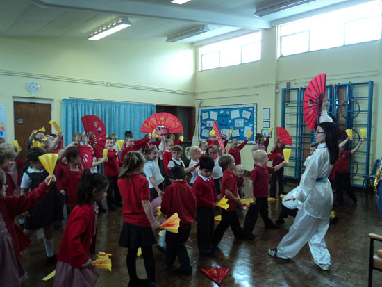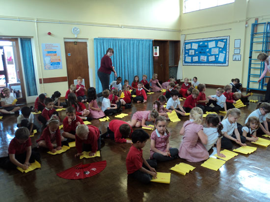 South Wootton infant school ,one of the link schools with KES (King Edward VII School), there are 190 kids there, in order to open the students’ horizon, the school decided to take the kids to travel around the world. They stayed one day in each main country in each continent. This week, the kids travelled to Asia; they would go to China, Japan, and India. Today, they began their travelling in China. They took plane to each country, and got a Chinese stamp on their passport.