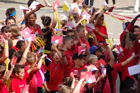 The event was jointly hosted by volunteer teachers dispatched by the Confucius Institute of Toulouse and Ms. Bobot, Principal of the High School. The performance was opened by dances rehearsed for long by the students of the kindergarten and primary school grade by grade. All dances were selected based on Chinese culture and Chinese elements. “The Little Swallow”, “Dragon”, “Yin and Yang” performed by the kindergarten students; “Panda Babies”, “Prince and Princess”, “Flying Butterflies”, “Descendants of the Dragon”, “Martial Arts Fighting” by students of the primary school department not only showcased the long-standing and profound Chinese culture, but also conveyed the vigorous and positive spiritual attitude of modern China. Then, students sang Chinese songs. At last, all teachers and students sang “Le Drapeau” (meaning the same flag) while waving flags of the two countries.