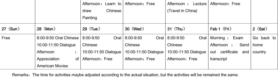2012 Winter Course Schedule in Harbin Institute of Technology