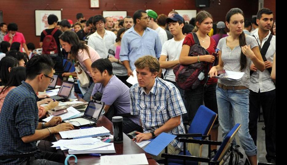 Below is the Scene of international students getting registered in Nanjing university/