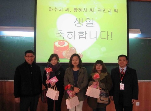 During the ceremony, Mr. Liang Xuehong also delivered birthday gifts to three girls from Chosun University since it was their birthday. The accompaniment of the Korean version of the Happy Birthday song added a brush of sweetness and warmth to the ceremony.