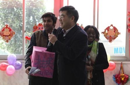 For the coming spring festival, OEC held a party on February 4, 2013 for overseas students to celebrate it. President of Jiangsu University, Prof. Yuan Shouqi, joined the party and did the lottery draw for teachers and students. The president together with all the teachers and students expressed their best wishes to all the citizens here in Zhenjiang through Zhenjiang TV station.
