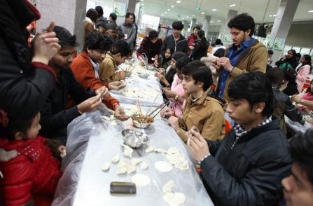 At the end of the party, everyone took part in making dumplings and altogether had a very good spring festival dinner.