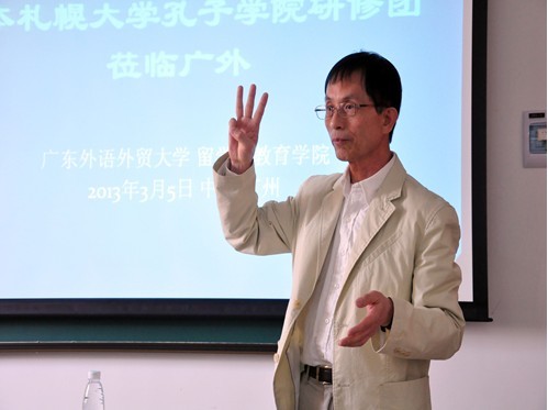 The delegation from Japan was warmly received by Dean Liang Xuehong from the International Education Institute. Since 2006, the Confucius Institute of Sapporo University has made six visits the GDUFS and has a sent a total of 110 students to our university. Liang said that through the joint efforts of the two universities, the Confucius Institute in Sapporo has achieved significant success and played a positive role in promoting non-governmental exchange between the two schools.