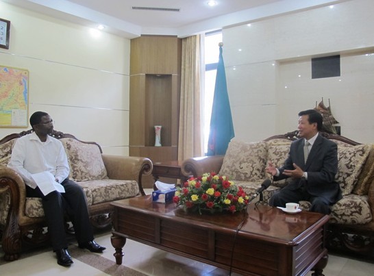 Chinese Ambassador Mr. Zhou Yuxiao to Zambia interviewed by Journalist of ZNBC about the meaning of Chinese language and culture TV program