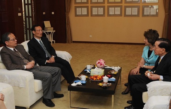 Prof. Yu Shicheng, Chairman of SMU University Council and Prof. Huang Youfang, SMU President first extent their warm welcome to Dr. James S.C. Chao and Honorable Elaine L. Chao. Then they introduced the recent development of professional training, scientific research, and international education of SMU and the construction ofShanghai International Shipping Center. On behalf of SMU, they also expressed their sincere gratitude to Dr. James S.C. Chao and his family for their care and support for our university in the long time.