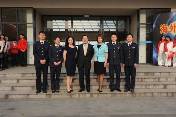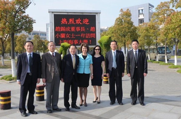 During the visit, Dr. James S.C. Chao, Honorable Elaine L. Chao, and Miss Angela Chao visited the Mulan Maritime Simulation Memorial Center. They also talked with the students who obtained the Scholarship granted by the Shanghai Mulan Education Foundation, and saw the activities of student associations.