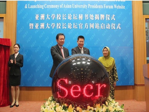 Later, the guests and school officials attended the opening ceremony of Standing Secretariat and official website of AUPF. President Zhong talked about the origin and development of AUPF and reported the founding process for the Standing Secretariat of AUPF. He also emphasized the essential role of creating a platform for Asian universities to further close contact.