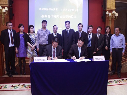Before signing the cooperation agreement, Yangcheng Evening News had a discussion with GDUFS about the businesses which fit in with students?specialties. Then, President Zhong shared his views on how the cooperation will benefit both sides and will retain the good cooperative model which was formed during the London Olympic Games. Liu Hailing agreed that both sides should make every effort to maintain and strengthen their current relationship.