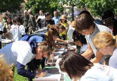 The event, held on Padova's famous Celebrity Square (Prato della Valle), was divided into two sections:"stand display" and "stage performance". "Stand Display" brought the visitors to intimate contact with Chinese traditional culture and art: Chinese textbooks, Chinese classroom experience, calligraphy competitions, traditional stationery, ethnic clothing display, percussion performances, folk singing, traditional musical instruments, Taiji, paper cutting and tea ceremony performances. Chinese and Italian national flags, red lanterns and Chinese knots jointly brought forth a festive atmosphere out of the fair. "Stage Performance", featured with male solo, zither playing and fashion catwalk, aroused the sentiment of audience, and from time to time waves of warm applause broke out.