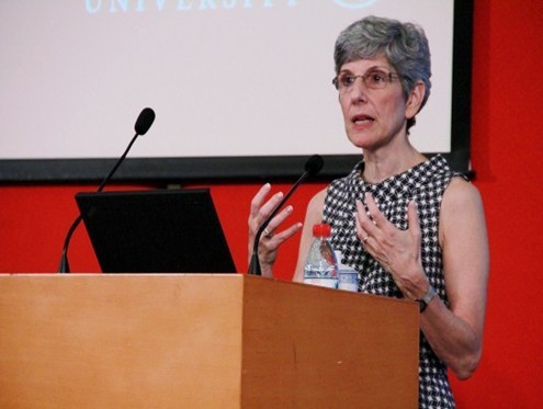 At the very beginning of the lecture, Nancy recalled three pivotal phases during the development of research universities in the USA. Afterwards, she mentioned the present situation of research universities including the researching fund, the management and arrangement of teaching staff as well as the general ranking of the university. In comparison, one aspect that we can seek the common ground with the USA is the system of life tenure, covering professors, lecturers, university staff, postdoctoral students and postgraduate students. When it comes to the general ranking of the university, she accentuated that the academic achievements of a university are far more important than reputation and social recognition. Therefore, universities should always put priority on teaching quality as opposed to merely pursuing different kinds of quantified indicators for the sake of a better name. Nancy was giving her lecture Based on the configuration of Clark University, Nancy primarily introduced the contemporary features of American Universities and other research institutes. Then, from the perspectives of global interaction, cross-disciplinary curriculum, practicality of the research, equality of educational opportunity, Nancy gave a further elaboration and analysis of the developmental trend of research universities in the USA, including cross-university cooperation and multi-disciplinary research. When talking about the challenges and opportunities facing the research universities in the 21 century, Nancy pointed out that the top-notch research institutes are required to be equipped with high-end facilities and consequently, universities should accordingly focus on some specific fields of research for the reason that the leading position in a certain filed is so effective at enabling a university to distinguish itself from other mediocre ones and outshine others. So she argued that control should be placed in terms of the scale of a university and meanwhile more attention should be paid to the humanistic concern and social science education.