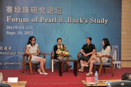 September 10 saw a successful holding of Pearl S. Buck’s Study Forum. President YUAN Shouqi delivered the opening speech. Then the well-known British writer, Hilary Spurling, gave her speech with the topic---On My Writing of Burying the Bones: Pearl S. Buck in China. The next speaker, Stephen Rachman---former director of the American Studies Program at Michigan State University---made the forum atmosphere reach its climax. His topic was: Pearl S. Buck in the American Literary History. The last speaker was YAO Junwei, professor of English of School of Foreign Languages and Cultures at Nanjing Normal University, who gave the audience a very impressive speech---On Pearl S. Buck’s Dialogicality as Social Activist.