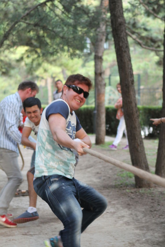 The last of the orientation activities was the Outdoor Program held on September 13, 2014, at Yuanmingyuan. Once again the big group of new students were divided into teams. Each team was given an opportunity to make their team cheers and team names. The new students came up with: the Green Machines, Red Devils, Yellow Nuts, Purple Business, Blue Sharks, and the Pink Panthers. Games were designed to be fun and exciting, but also bring out the competitiveness of all of the teams to bring team members closer together. Games included a big maze, tug of war, newspaper folding, hula hoop passing, and much more. At the end of all the games, the winner was the Green Machine team. Most students expressed that they had a great experience at the Old Summer Palace.