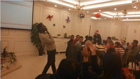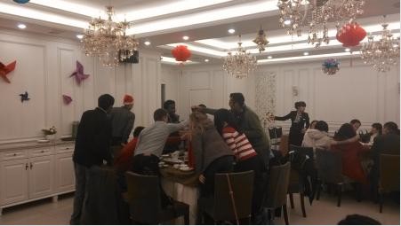 On Christmas Eve, Universal Hand-in-Hand Association Director Mr CUI Yong and another OEC faculty member Ms XU Dan, led the Association members to a downtown restaurant and celebrated this popular festival together.