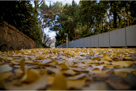 Scatter thousands of golden Ginkgo leaves to cover the path.
