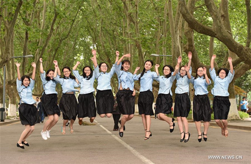 NANJING, June 6, 2016 (Xinhua) -- Students pose for a photo on the campus of Southeast University in Nanjing, east China's Jiangsu Province, June 6, 2016. The Southeast University celebrated its 114th founding anniversary on Monday. (Xinhua/Sun Can)