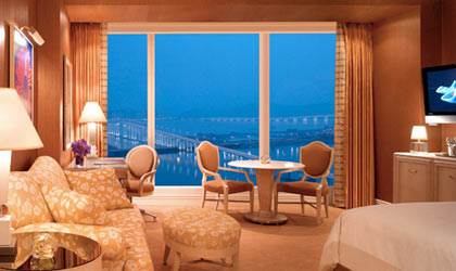 Steve Wynn’s signature Las Vegas hotel design is replicated here, albeit on a somewhat smaller scale. There’s a vast casino open 24/7 and a plethora of nearby great dining and shopping opportunities on the Cotai Strip. The hotel boasts over 600 rooms and suites with motorized drapes and mini stereos with iPod docking stations. Dine at one of the six gourmet restaurants, take in a Vegas-style show, or indulge in a spa treatment.