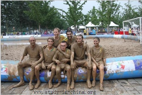 The world's dirtiest game is now being played in Beijing. At the Olympic Park, next to the Bird's Nest and Water Cube, the first ever swamp soccer tournament to be held in China is currently underway. The competition kicked off on August 9th and will end with the championship match on August 20th. During the tournament 32 teams will compete for a chance to represent China in the 2012 Swamp Soccer World Cup, which will be held in the U.K. The games are being held every day and begin around 3pm and last until 8pm.