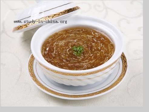 Brown braised pork tied with straw (生态稻草扎肉) is served with steamed bread, and is decidedly non-greasy. There is also the slow boiled bean curd (千滚老豆腐) which has a tougher texture than the usual soft bean curd, but absorbs the flavors of the soup well. The restaurant's Peking roast duck is roasted with glossy ganoderma (灵芝烤鸭), a herb that is believed to be tremendously replenishing. The herb is said to increase immunity and prevent cancer.