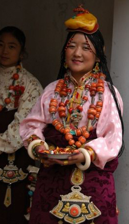 As wearing gold and precious stones is considered auspicious for Tibetan brides, jewelry is a main aspect of the Tibetan wedding trousseau.
