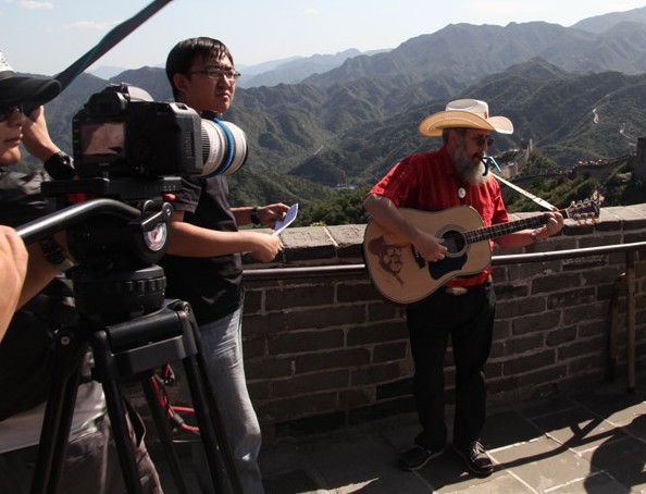Levine, a sixtyish folksinger from Los Angeles with a bushy beard, likes to sport flannel shirts and a straw hat, whether he's teaching English or strolling on the Great Wall with his guitar and his muse. Not exactly the picture of Daddy Warbucks or Donald Trump.
