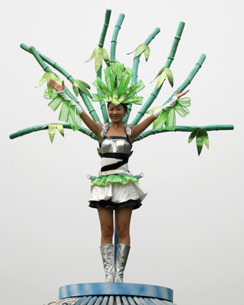 A performer attends a rehearsal of a show featuring the Olympic mascots in Beijing July 25, 2008. The show is one of the Olympic themed cultural activities and will be performed in the Olympic Green.