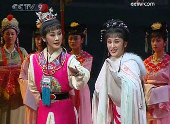 The roles of the tragic lovers, Jia Baoyu and Lin Daiyu, are played by three different pairs of actors. They represent the three generations during the opera's 50 years of history.