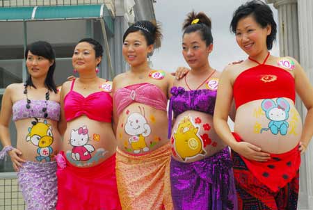 Colored paintings on bellies: Unborn moms in China