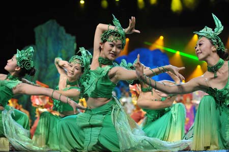 The newly-weds tour during a group wedding of traditional Chinese style in the Shajiabang Scenic Spot in Changshu, east China's Jiangsu Province, Nov. 16, 2008. |