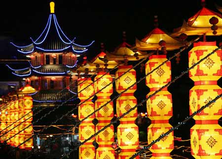 Lanterns and lights decorate the Confucius Temple in Nanjing, eastern China's Jiangsu province, November 3, 2008. |